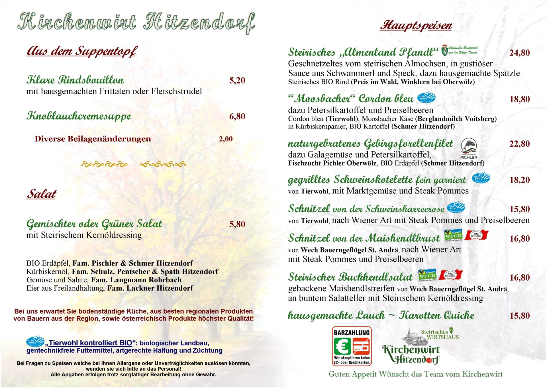 Im Jahr 2010 haben Ilse Pötscher & Rudi Pöschl den Kirchenwirt in Hitzendorf übernommen. Wir stehen Ihnen für jede Feierlichkeit (Hochzeit, Taufe, Geburtstag, Familienfest, Firmenfeiern u.v.m.) jederzeit gerne zur Verfügung.